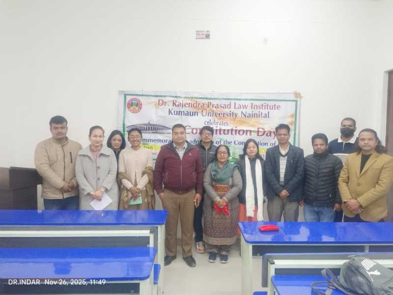 नैनीताल: डॉ० राजेन्द्र प्रसाद विधि संस्थान कुमाऊँ विश्वविद्यालय, नैनीताल में 26 नवम्बर संविधान दिवस के उपलक्ष में संविधान के महत्व के बारे में विस्तृत चर्चा की गयी तथा संविधान दिवस के कार्यक्रम में शिक्षकों ने भी अपने विचार व्यक्त किये।